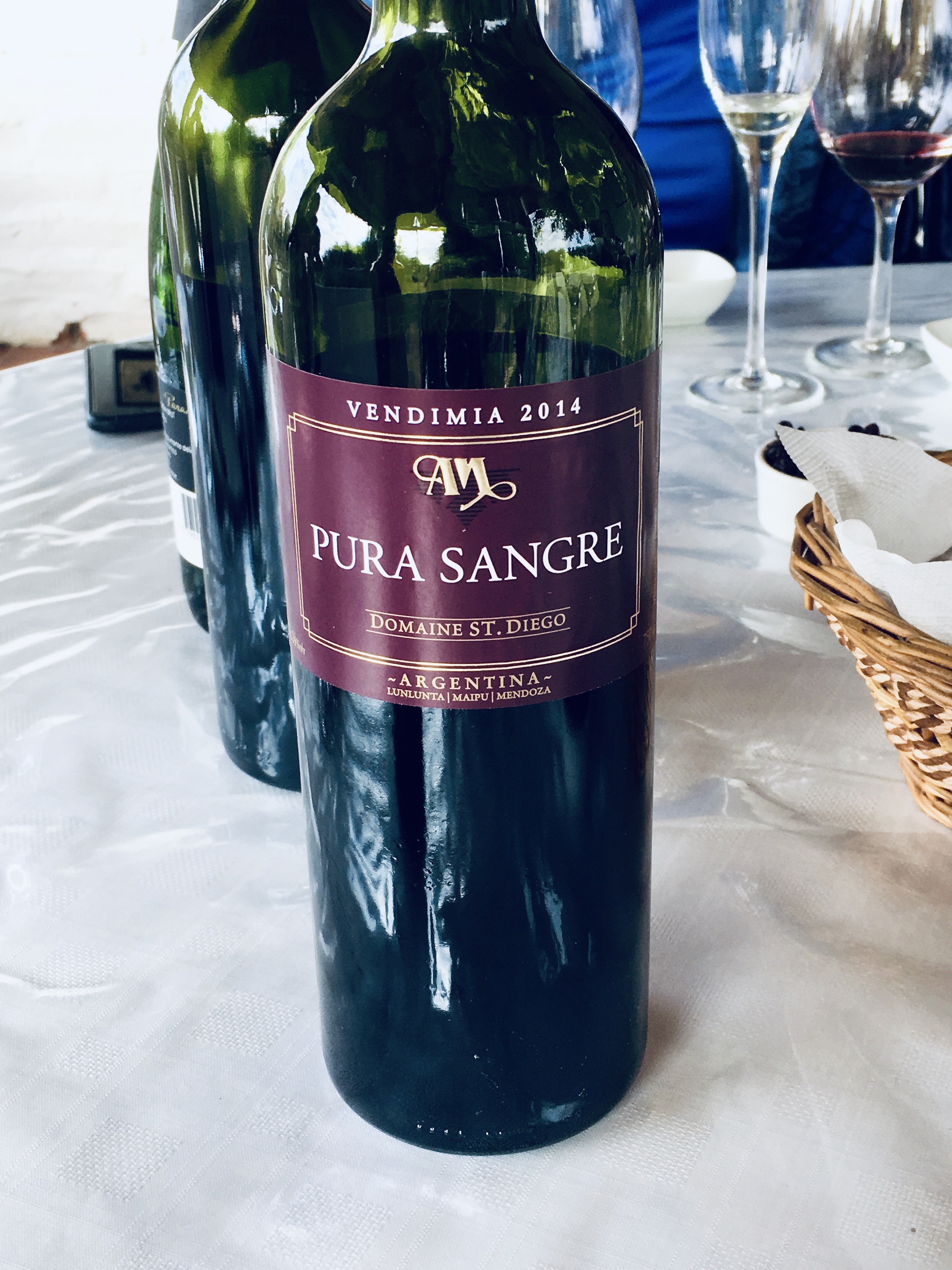 Infine, abbiamo assaggiato Pura Sangre 2014 (Malbec 80%, Cab. Sauvignon 20%). Maturazione in barrique di rovere francese. Colore rosso scuro, profondo. Naso maturo di prugna, cacao, noce moscata. Tannini delicati mai aggressivi. Di buona persistenza gusto-olfattiva. Corretto uso del legno.