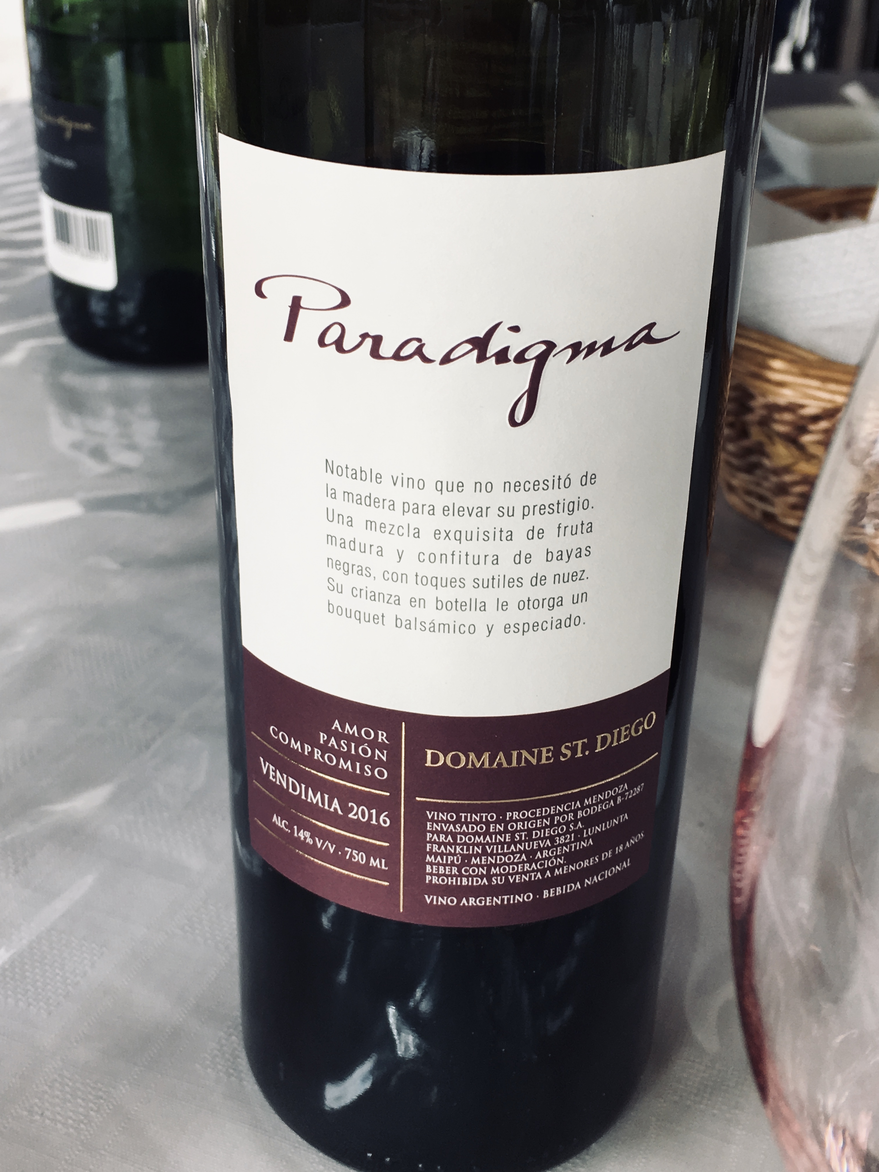 È stata poi la volta di Paradigma 2016 ( Malbec 60%, Cab. Sauvignon 20%; Cab. Franc 20%). Maturazione in acciaio. Vino molto fresco, con un frutto ricco, croccante, succoso. Note di frutti rossi, mora, prugna. Gradevolissime note vegetali che riconducono alle varietà. Tannini levigati. Grande piacevolezza di beva.