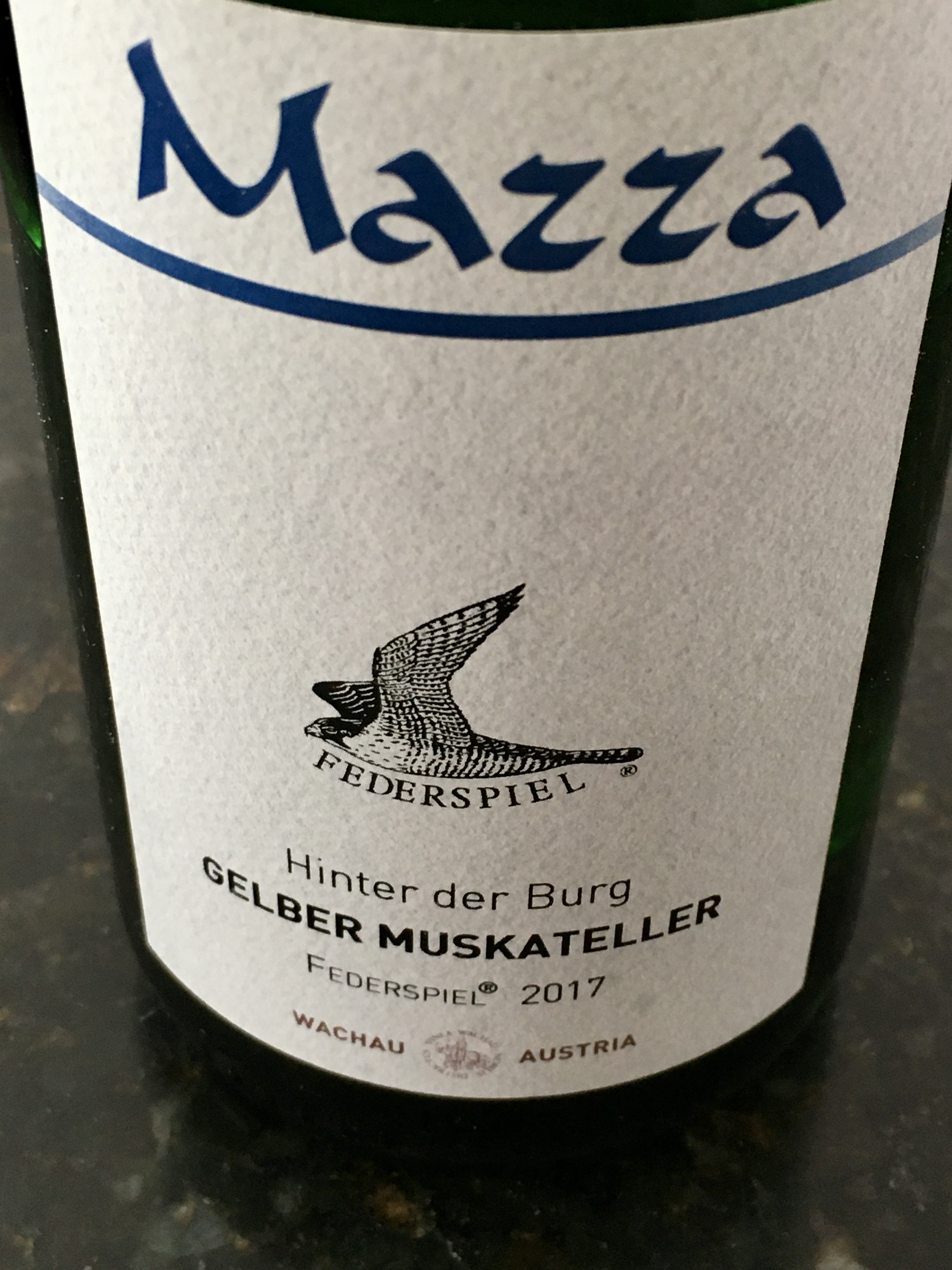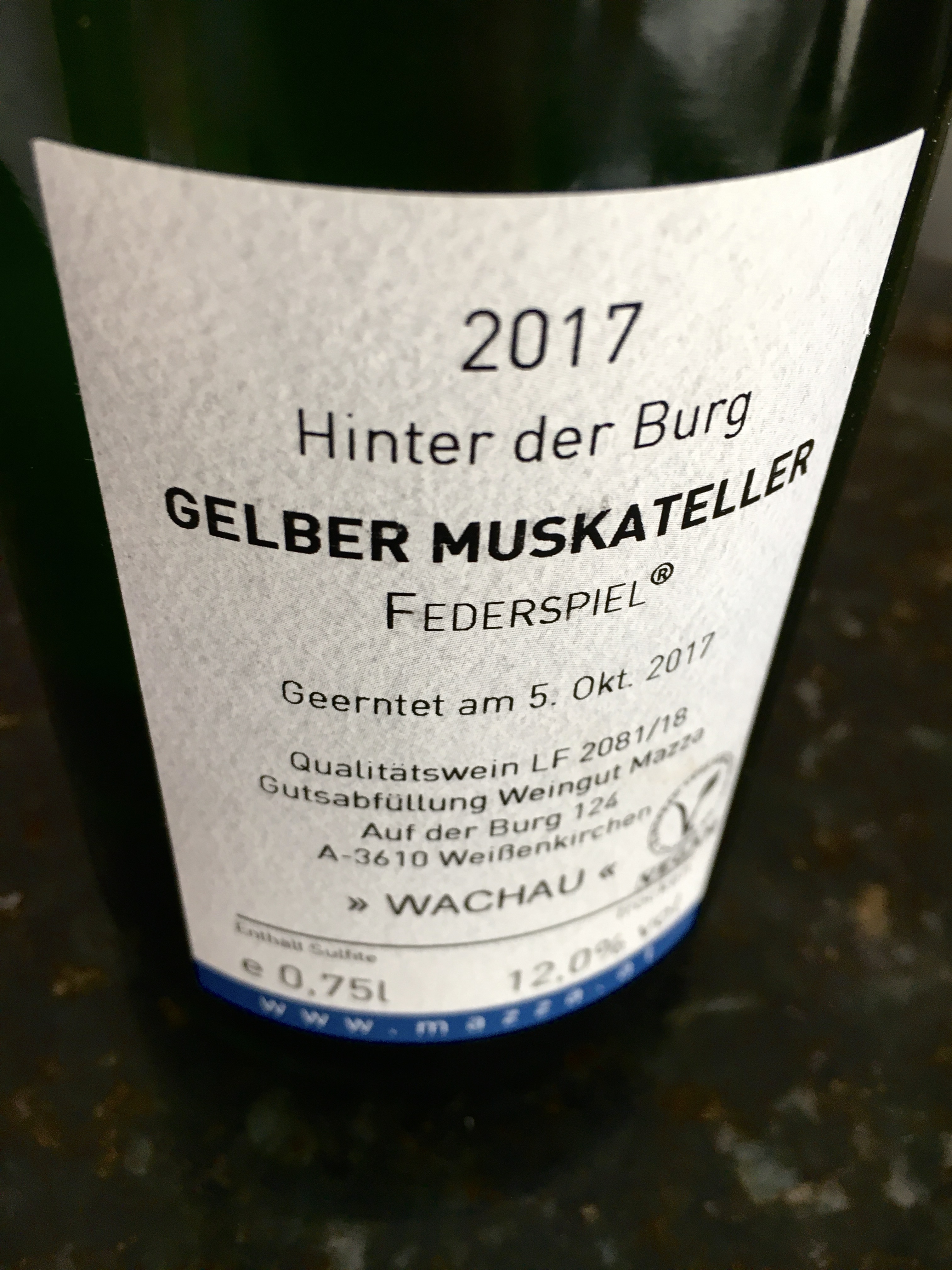 GELBER MUSKATELLER FEDERSPIEL HINTER DER BURG 2017 – WEINGUT MAZZA