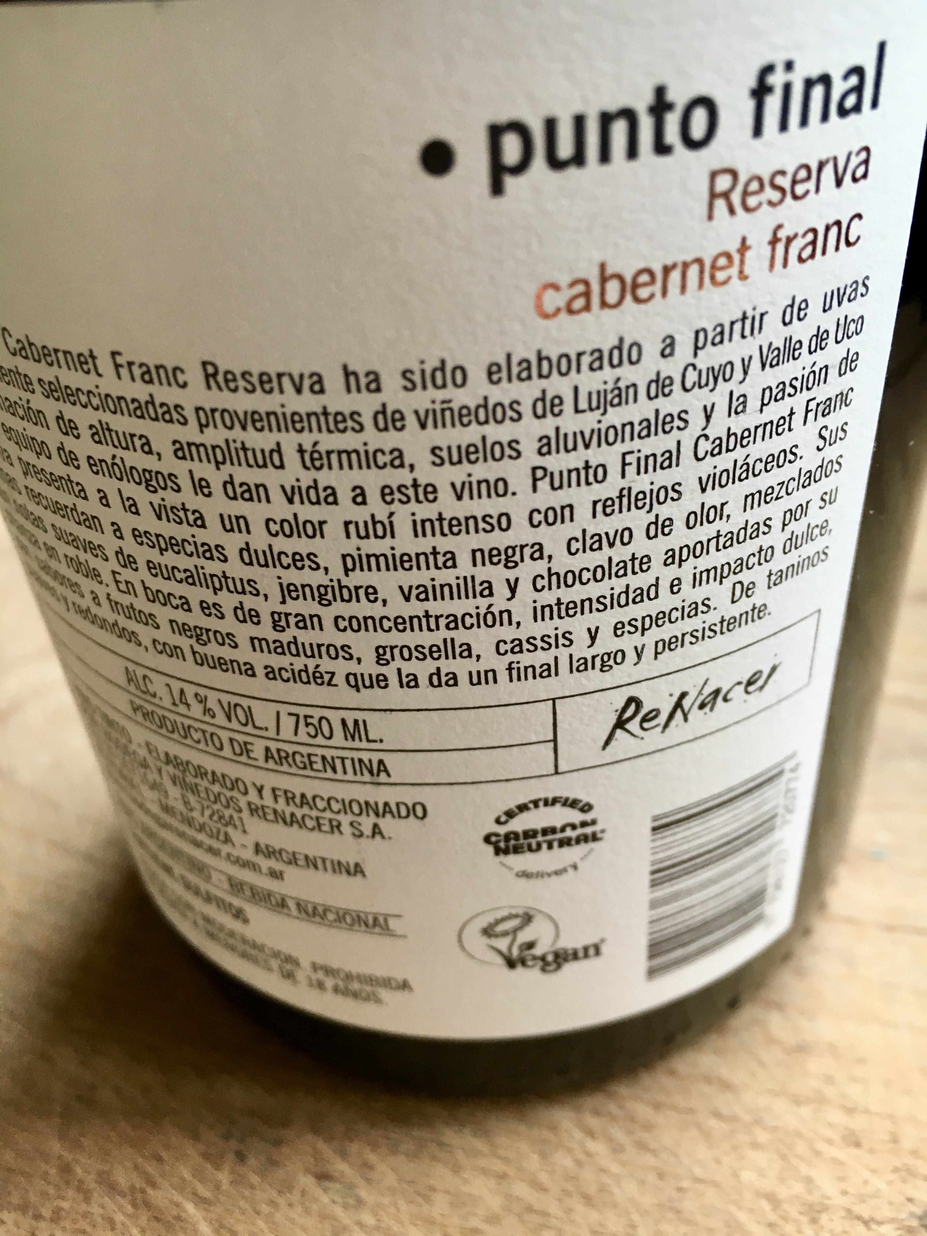 Punto Final Cabernet Franc Reserva 2017 – Bodega Renacer