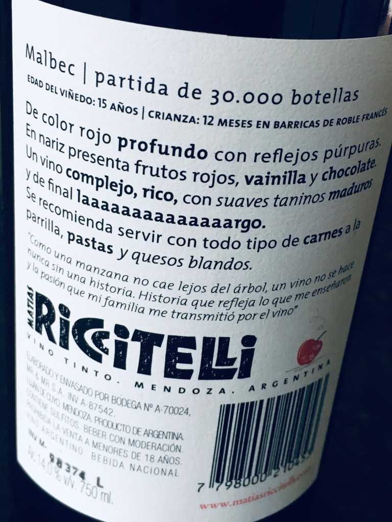 The apple doesn’t fall far from the tree Malbec 2018 – Matias Riccitelli