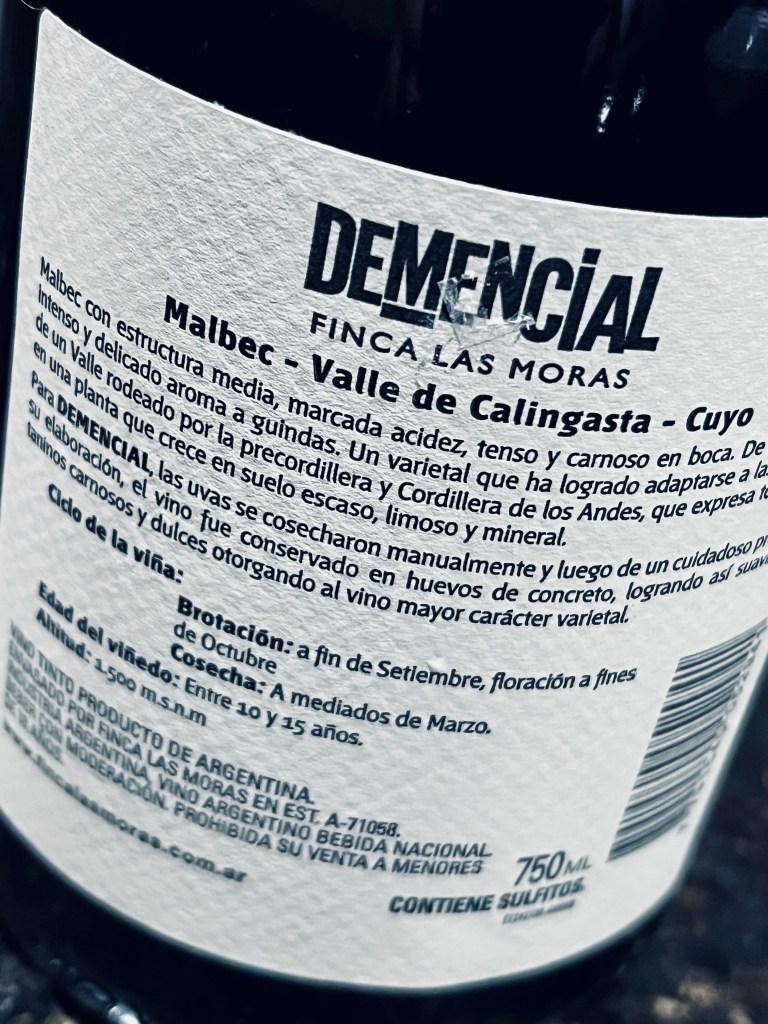 DEMENCIAL Malbec Valle de Calingasta Cuyo 2021 – Finca Las Moras
